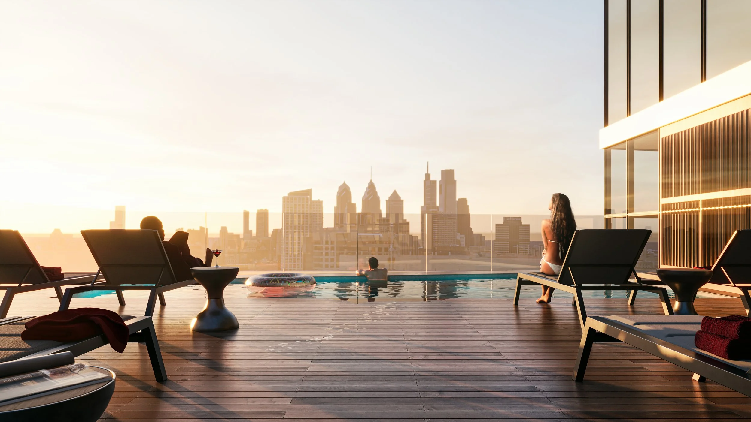 Discover a trio of beautifully designed lounges on the 32nd level, where floor-to-ceiling windows frame breathtaking views of the Philadelphia skyline. Whether you're hosting friends, working remotely, or simply taking it all in, these sky-high spaces offer a luxurious backdrop for every moment.